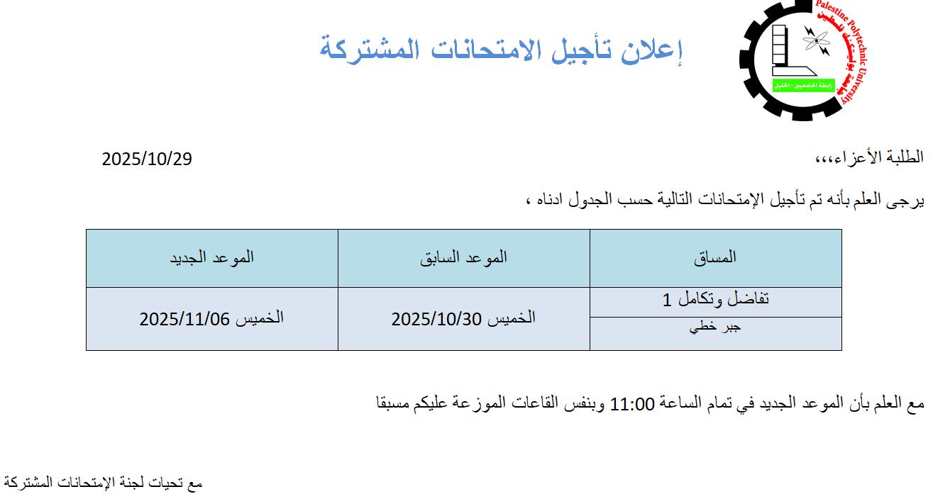 تأجيل الإمتحانات المشتركة ليوم الخميس‎ 30/10/2025